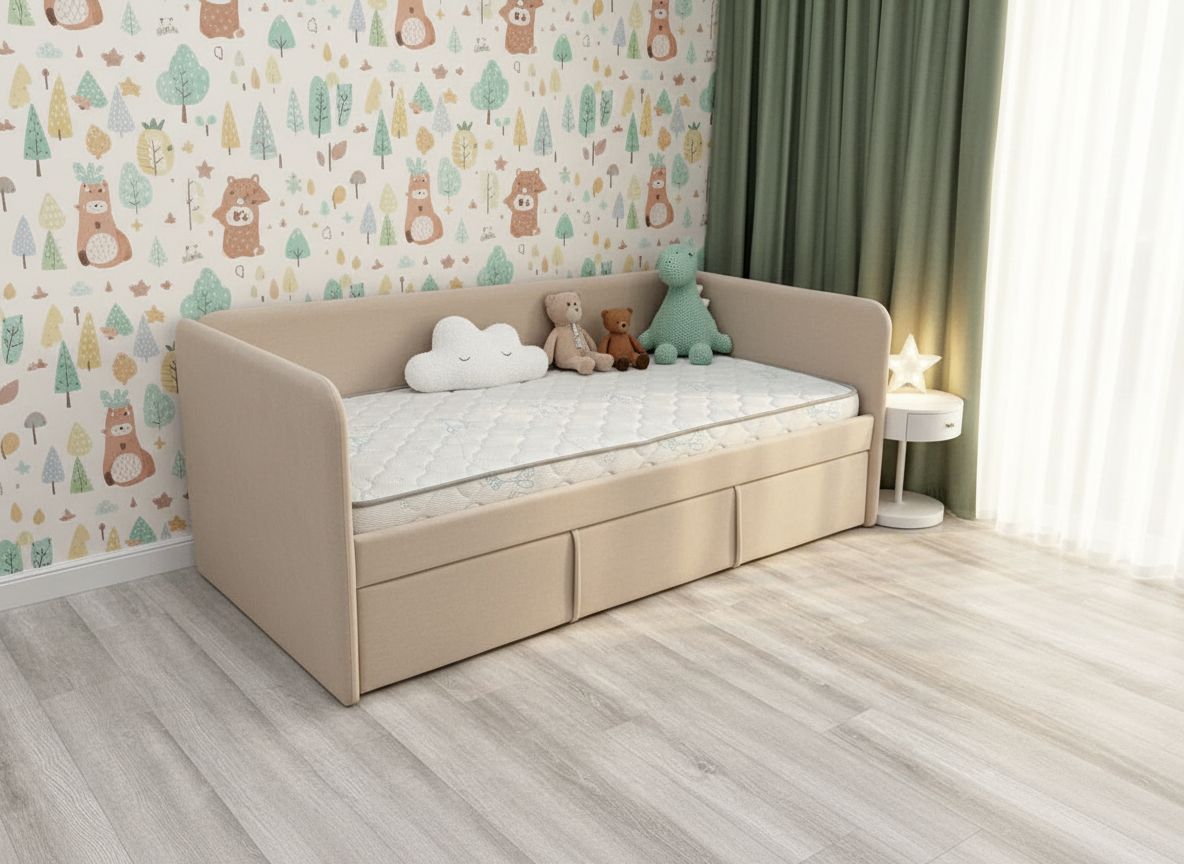3. Универсальный «Бежевый». Классика, которая никогда не выйдет из моды. «Бежевый» — это теплый, природный оттенок, который создает нейтральную и безопасную атмосферу для ребенка. Он идеально подходит для детей любого пола, возраста и легко комбинируется с яркими акцентами в декоре и текстиле. Такой цвет — основа для любого стиля, будь то современный или классический.