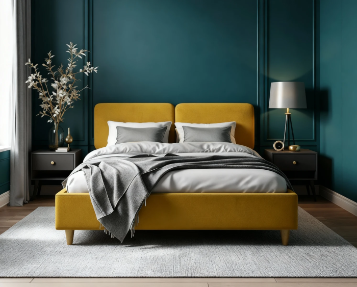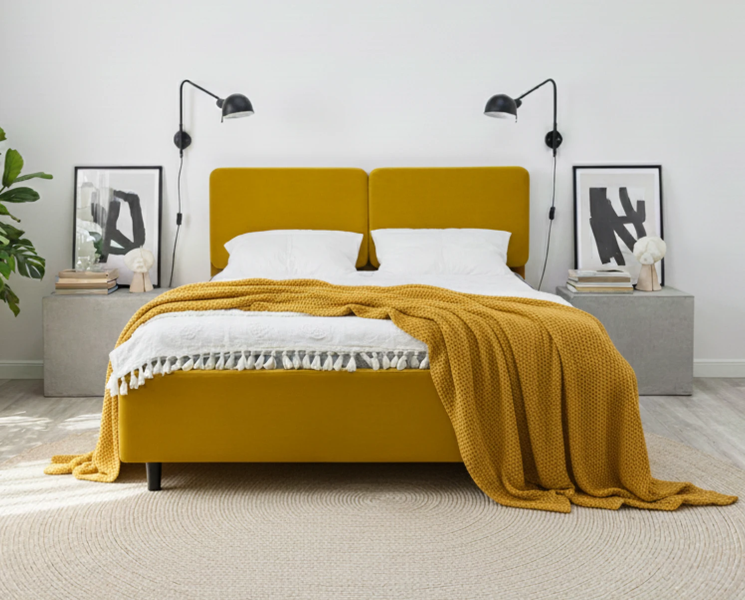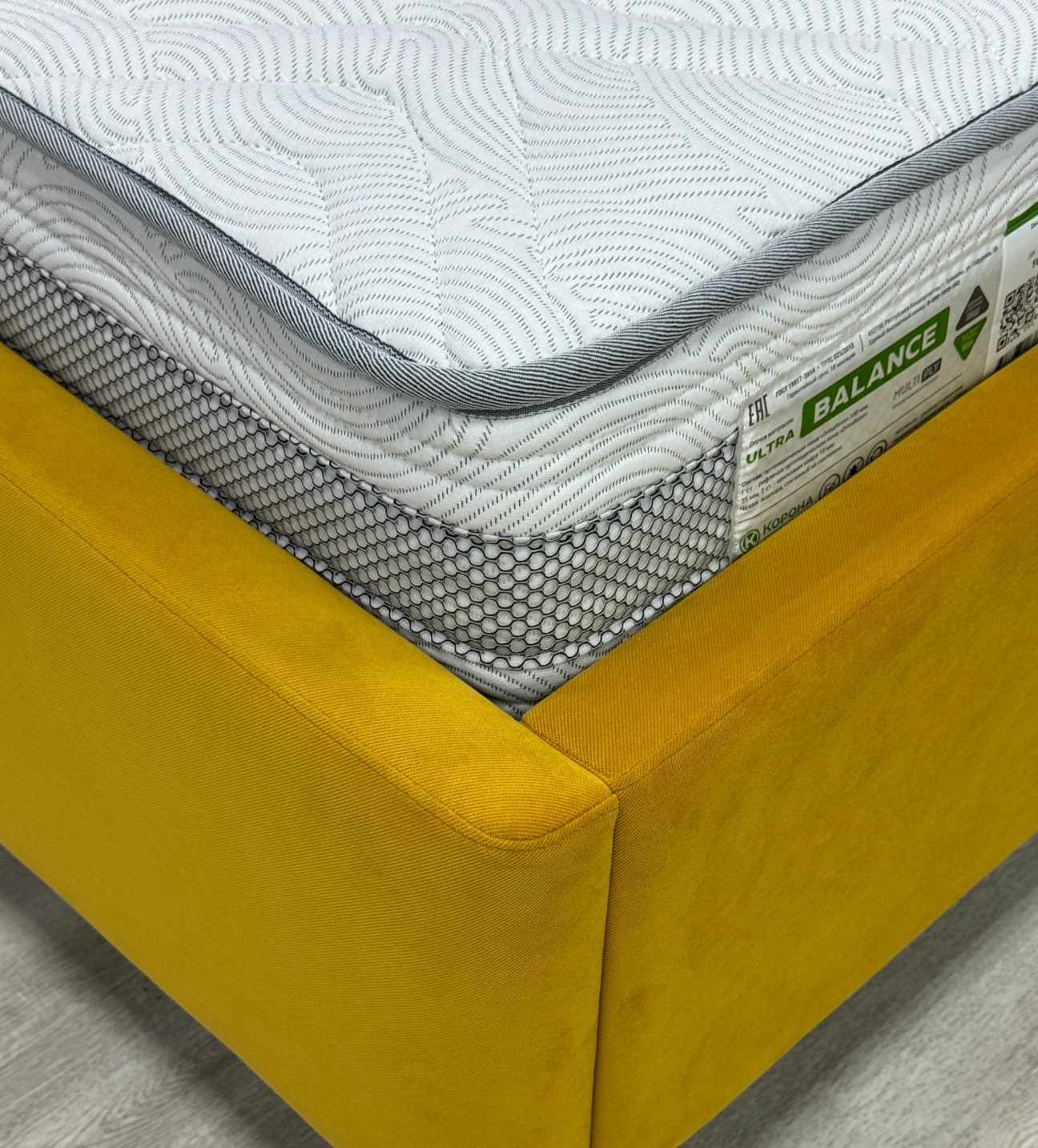 Интерьерная кровать «Selena» – эксклюзивная модель для фирменных салонов в трендовом минималистичном дизайне со съемными подушками и возможностью выбора высоты ножек.
