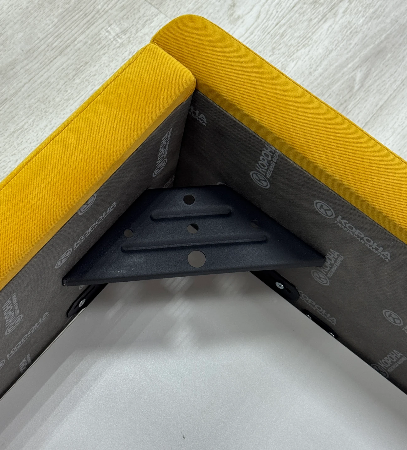 Подушки в данной модели изготовлены с использованием жесткого основания из МДФ с тыльной стороны для придания ей идеальной формы, что позволяет применять с фронтальной стороны сочетание пены и пышного слоя синтепона. Такое сочетание повышает комфорт спинки при ее эксплуатации в сидячем положении во время отдыха на кровати.