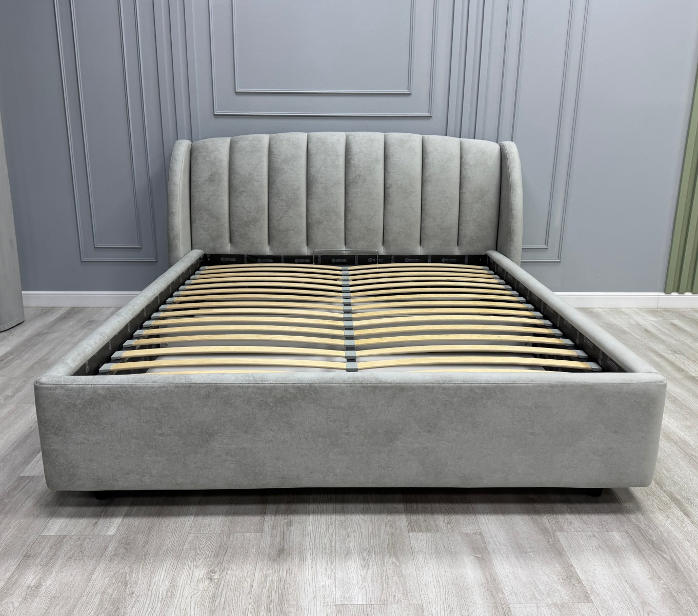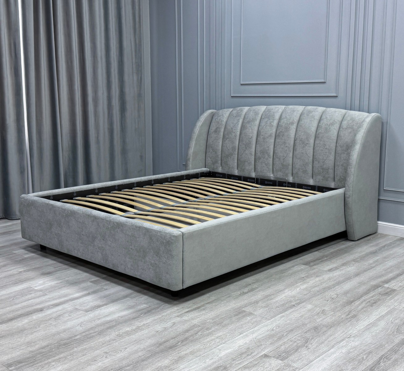 • Cпинка оптимальной высоты - кровать хорошо будет смотреться в спальной комнате как с невысокими, так и с высокими потолками.
